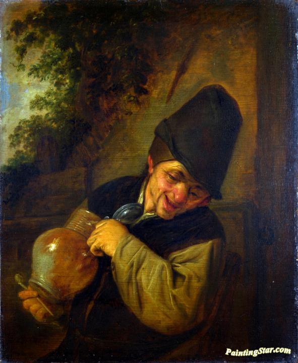 A Peasant holding a Jug and a Pipe, Art Painting by Adriaen van Ostade
