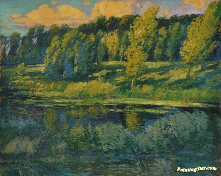 A pond Brabčák near town Čáslav, Art Painting by Václav Radimský