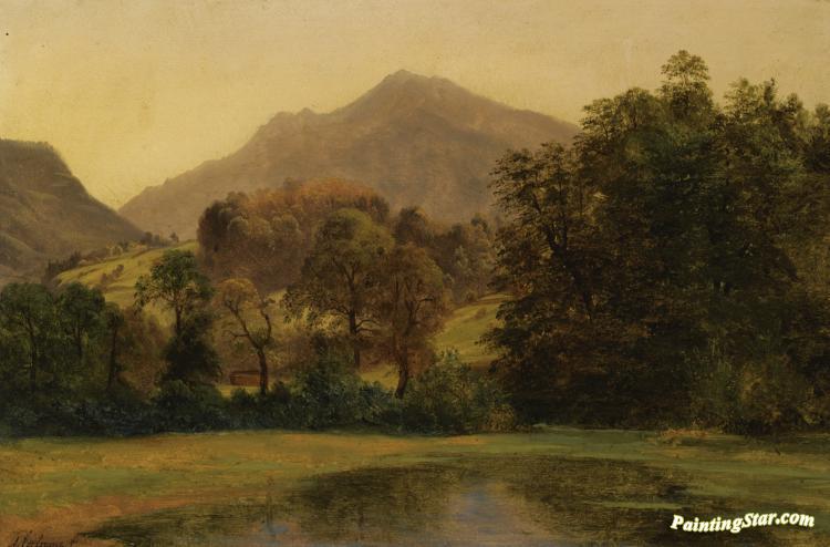 A Pond With A Mountainous Landscape In The Background, Art Painting by Alexandre Calame