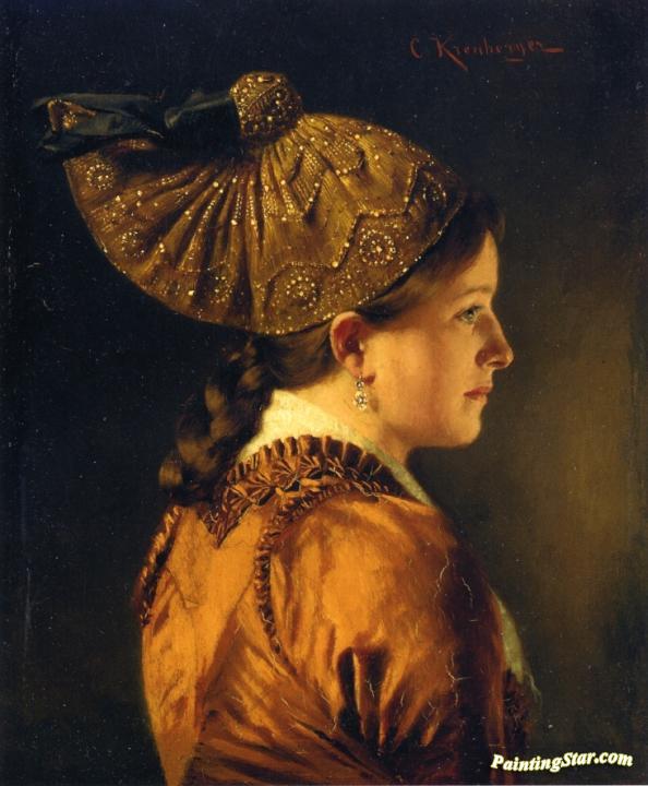 A Portrait of a Girl Wearing a Golden Hood, Art Painting by Carl Kronberger