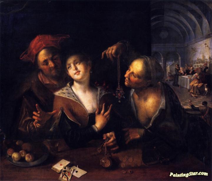 A Procuress With A Couple, Art Painting by Hans von Aachen