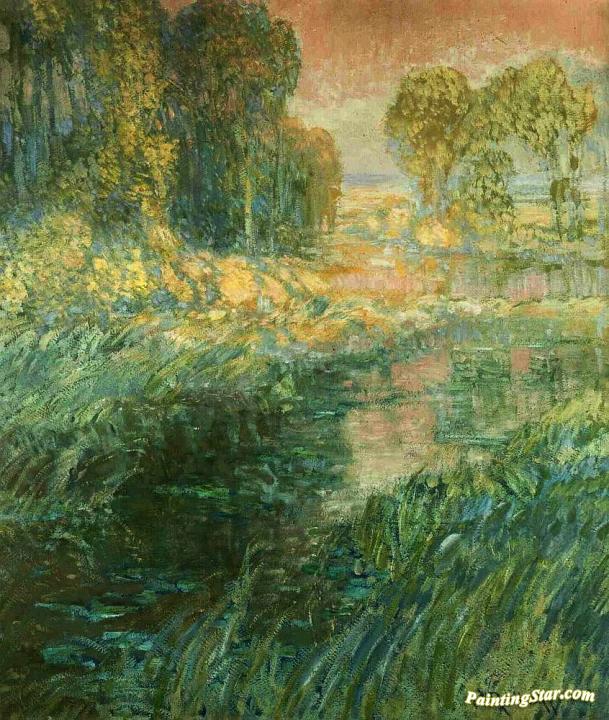 A Red Twilight Sky - The Daybreak, Art Painting by Václav Radimský