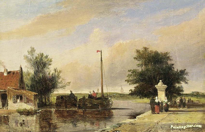 A River Landscape With Boats And Figures On A Quay, Art Painting by Jan Weissenbruch
