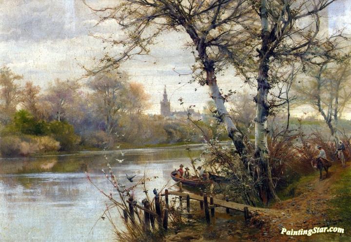 A River Landscape With Seville Beyond, Art Painting by Manuel Garcia y Rodriguez