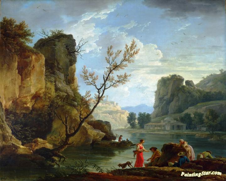 A River with Fishermen, Art Painting by Claude-Joseph Vernet