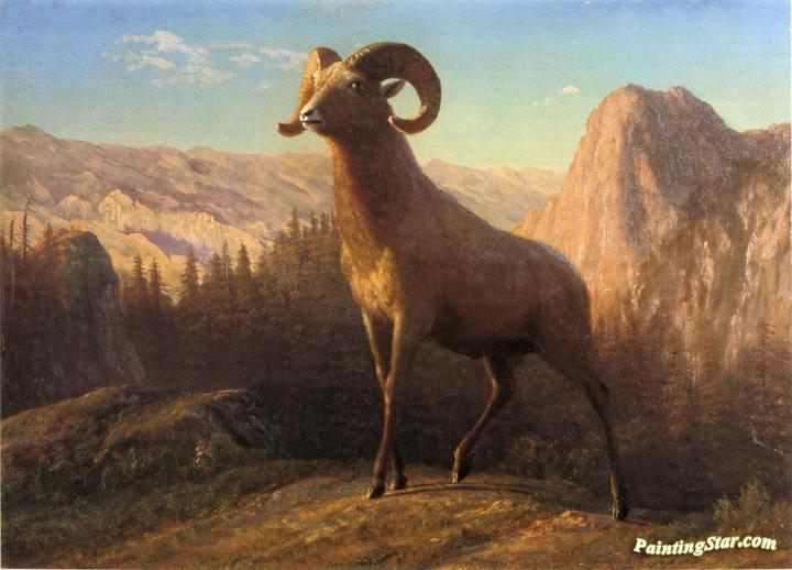 A Rocky Mountain Sheep, Ovis, Montana, Art Painting by Albert Bierstadt