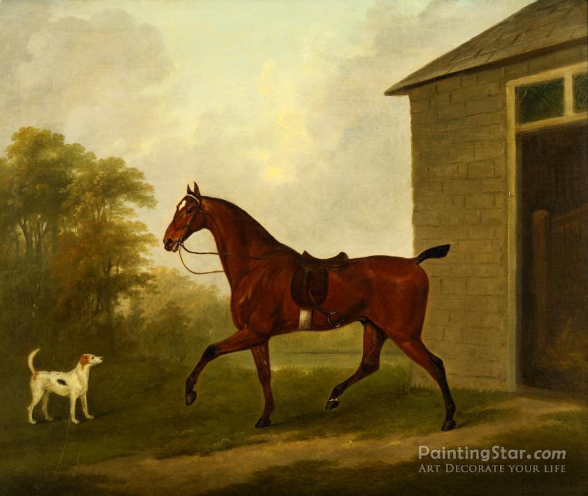 A Saddled Bay Hunter With A Foxhound, Outside A Stable, Art Painting by John Nost Sartorius