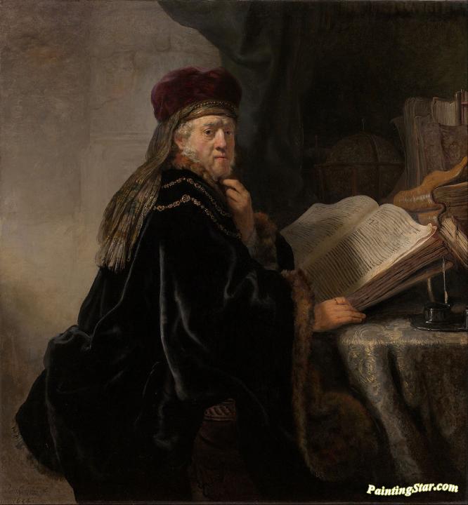 A Scholar Seated At A Desk, Art Painting by Rembrandt van Rijn