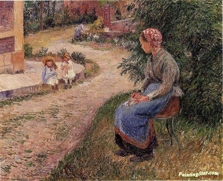 A Servant Seated in the Garden at Eragny, Art Painting by Camille Pissarro