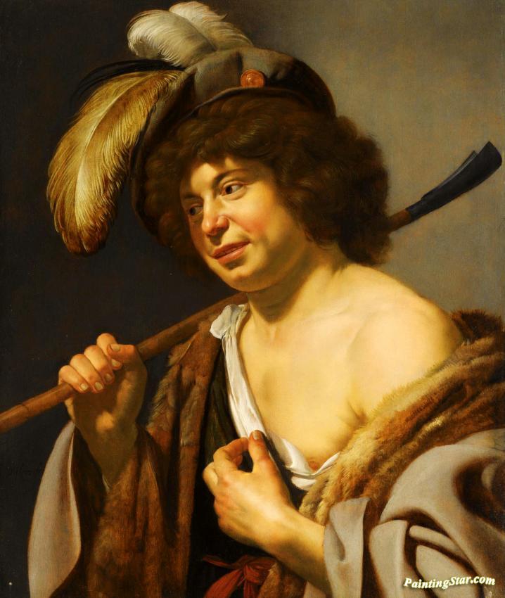 A Shepherd, Wearing A Plumed Hat, Holding A Staff In His Right Hand, Art Painting by Jan van Bijlert