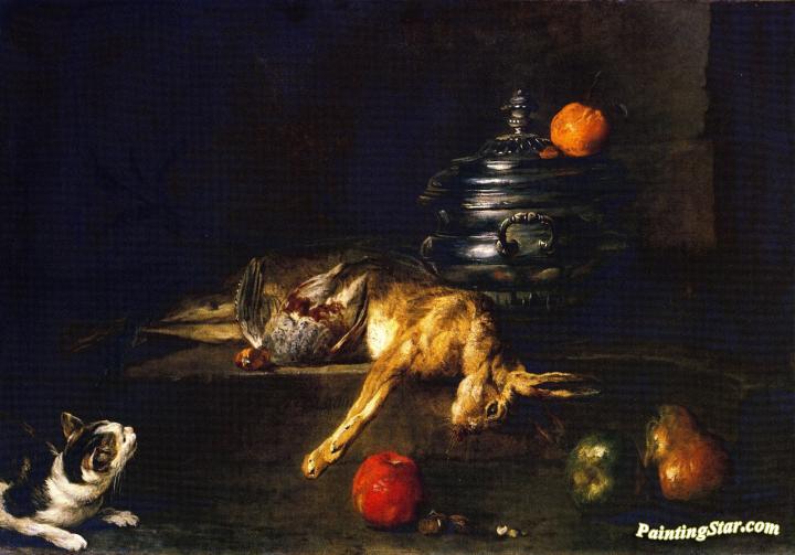 A Soup Tureen With A Cat Stalking A Partridge And Hare, Art Painting by Jean-Baptiste-Simeon Chardin