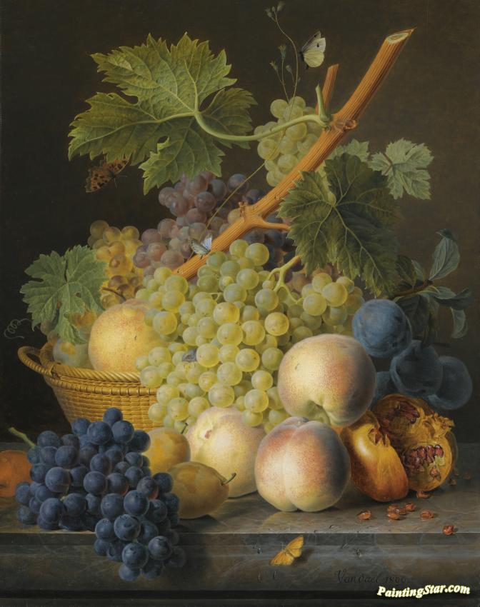A Still Life With Grapes And Peaches In A Basket, Art Painting by Jan Frans van Dael