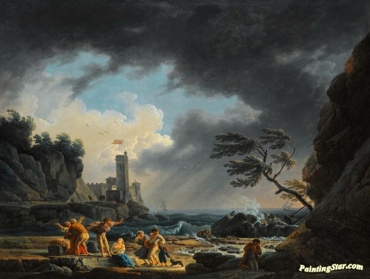 A Stormy Coastal Scene With Figure On A Beach Having Escaped A Shipwreck, Art Painting by Claude-Joseph Vernet