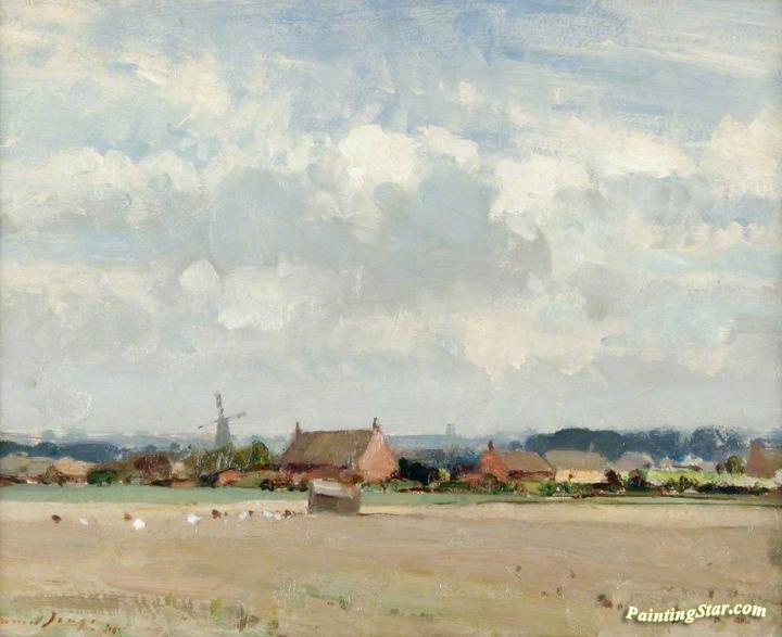 A Stubble Field Near Ludham, Norfolk, Art Painting by Edward Brian Seago