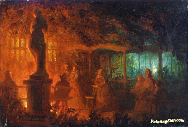 A Study for 'Soiree de feux de Bengale au Vaux-Hall, Parc de Bruxelles', Art Painting by Petrus van Schendel