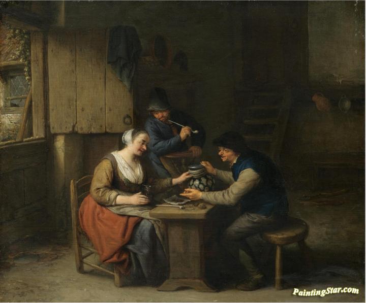 A Tavern Interior With Three Boors, Art Painting by Adriaen van Ostade