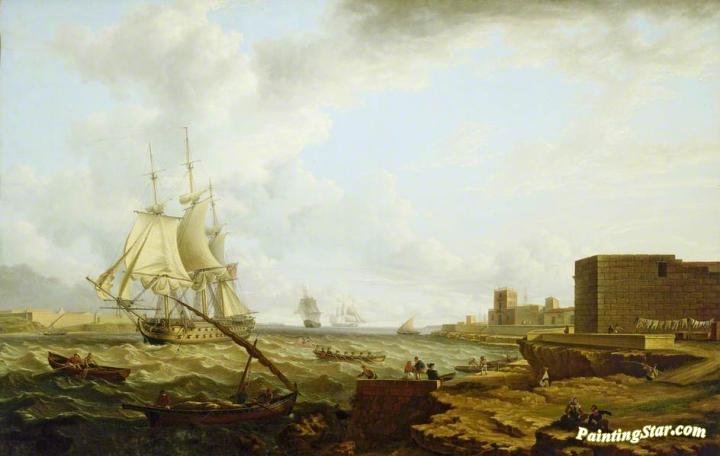 A Third-Rate Entering Port Mahon, Art Painting by Charles Martin Powell
