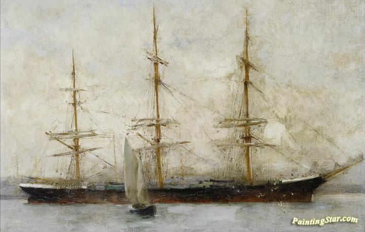 A three-masted ship at anchor, Art Painting by Henry Scott Tuke