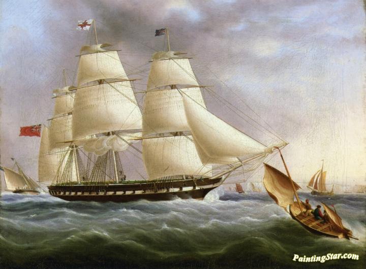A Three-Masted Ship off Dover, Art Painting by James E. Buttersworth