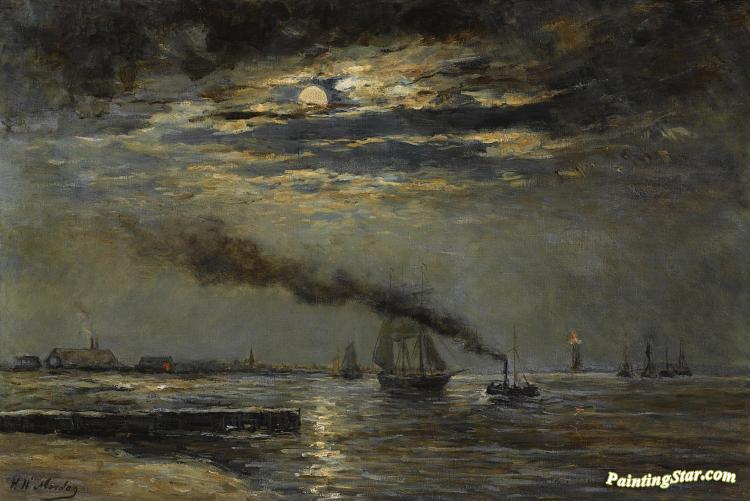A Three-master Entering Scheveningen Harbour At Moonlight, Art Painting by Hendrik Willem Mesdag