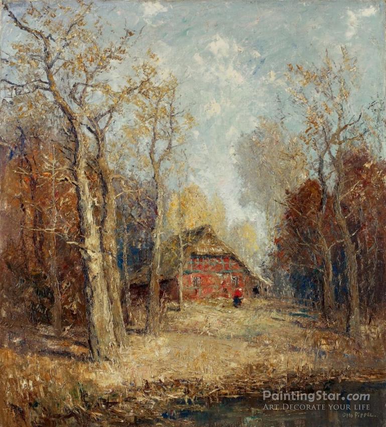 A Timber House At The Pond, Art Painting by Otto Pippel