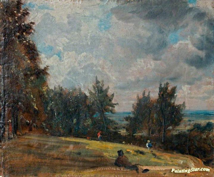 A View at Hampstead with Trees and Figures, Art Painting by John Constable