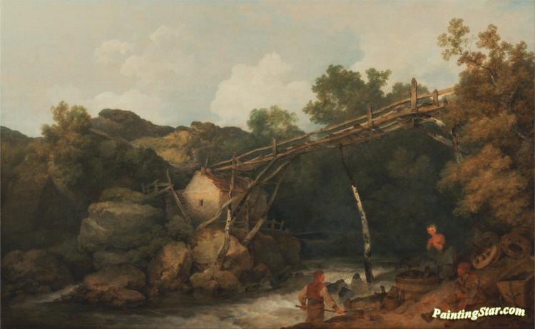 A View Near Matlock, Derbyshire With Figures Working Beneath A Wooden Conveyor, Art Painting by Philip James de Loutherbourg