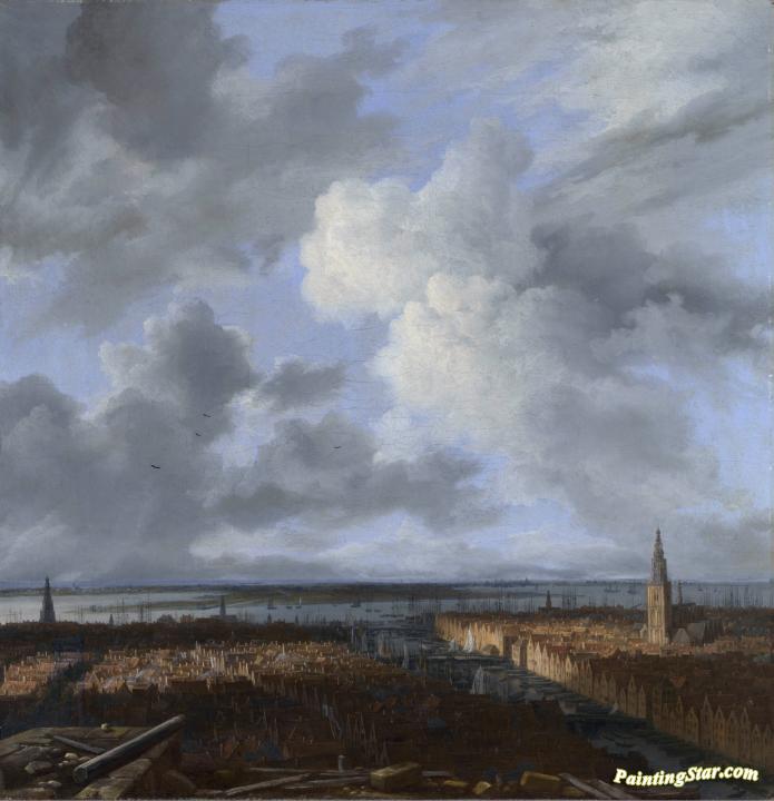 A View of Amsterdam looking towards the IJ from the scaffolding surrounding the tower of Amsterdam.., Art Painting by Jacob van Ruisdael