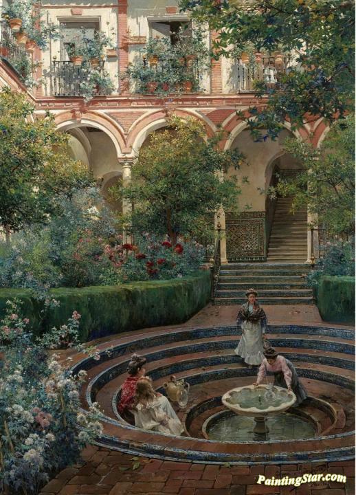 A Villa Garden, Art Painting by Manuel Garcia y Rodriguez