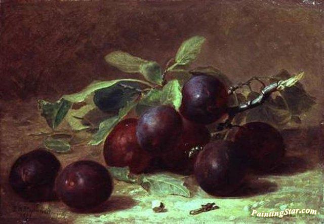 A Wasp Resting on a Sprig of Victoria Plums, Art Painting by Eloise Harriet Stannard