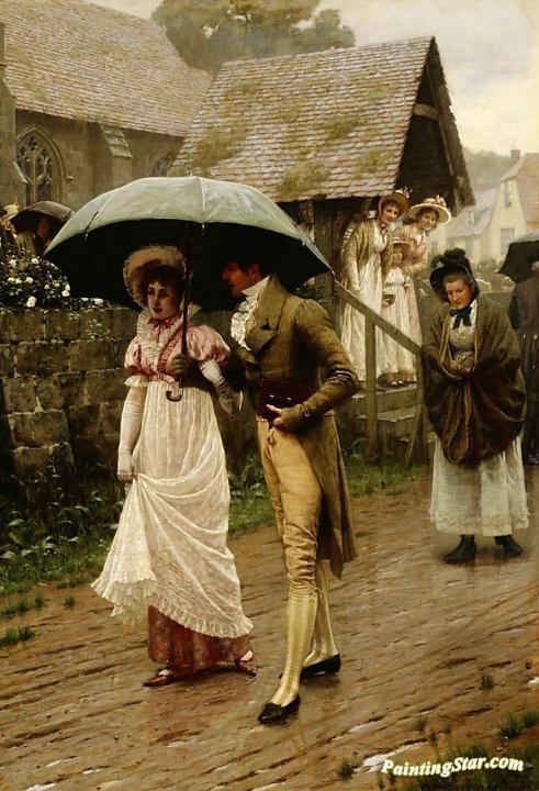 A Wet Sunday Morning, Art Painting by Edmund Blair Leighton
