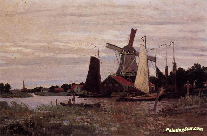 A Windmill at Zaandam, Art Painting by Claude Oscar Monet