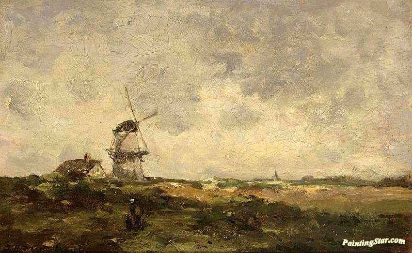 A Windmill In A Polder Landscape, Art Painting by Jan Weissenbruch