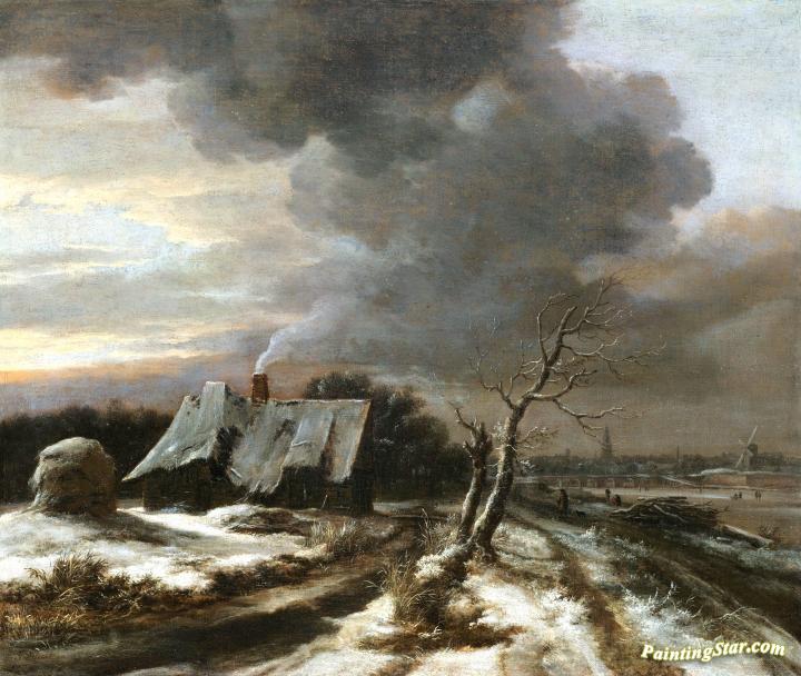 A Winter Landscape with a View of the River Amstel and Amsterdam in the Distance, Art Painting by Jacob van Ruisdael