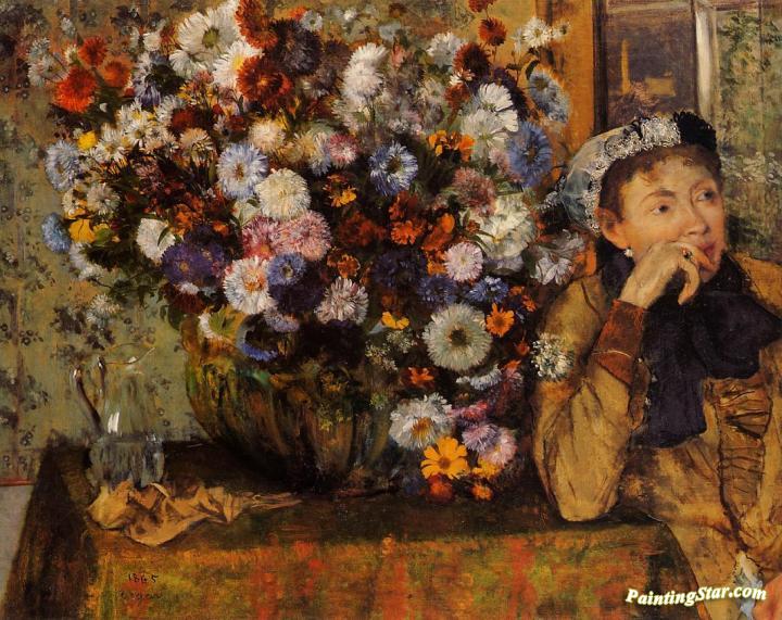 A Woman Seated beside a Vase of Flowers, Art Painting by Edgar Degas