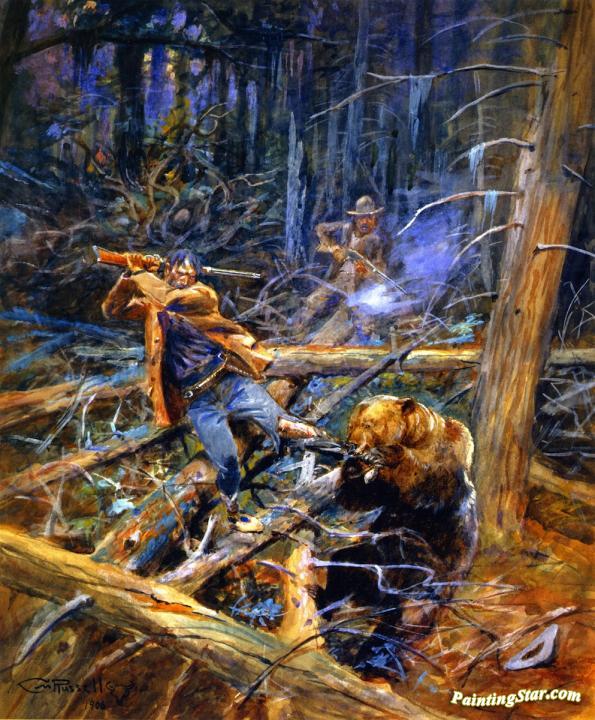 A Wounded Grizzly, Art Painting by Charles Marion Russell