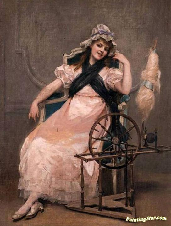 A Young Beauty at a Spinning Wheel, Art Painting by Madeleine Jeanne Lemaire