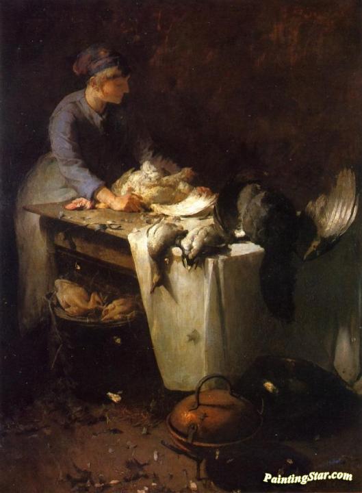 A Young Girl Preparing Poultry, Art Painting by Emil Carlsen