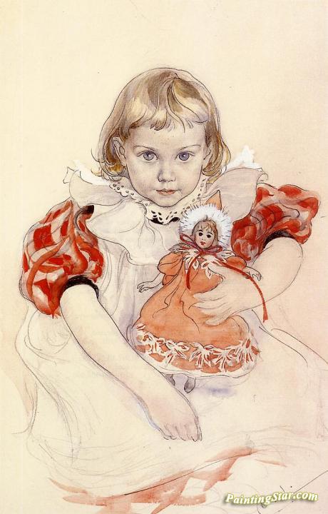 A Young Girl With A Doll, Art Painting by Carl Larsson