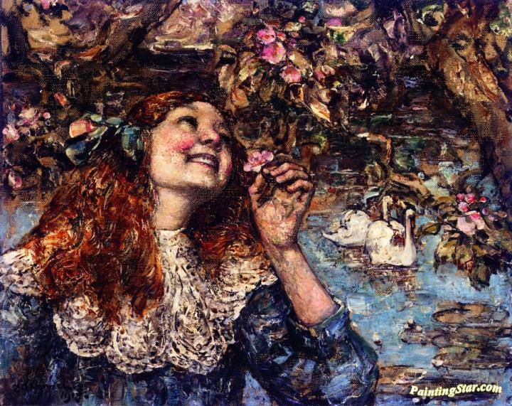 A Young Girl with Swans, Art Painting by Edward Atkinson Hornel