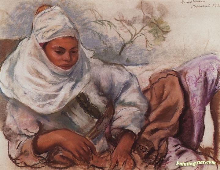 A young woman in a white headdress, Art Painting by Zinaida Serebriakova