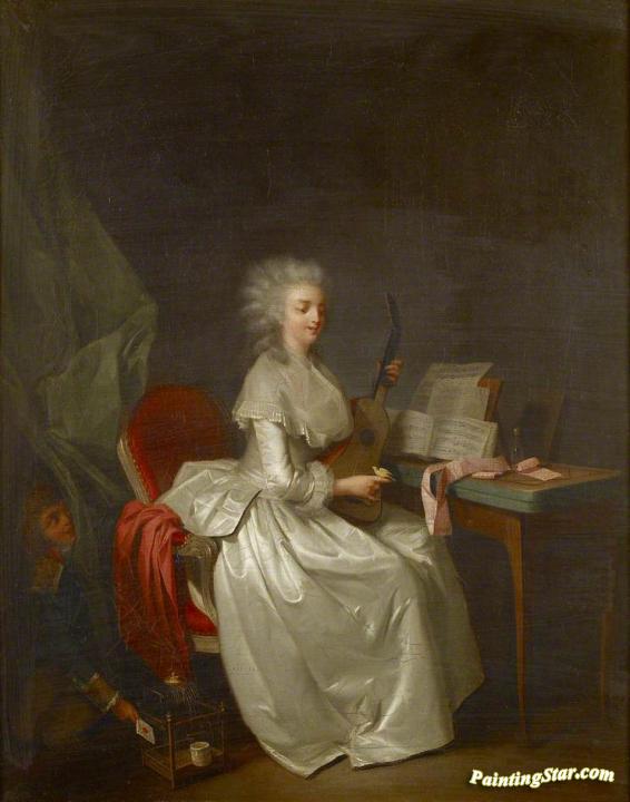 A Young Woman Playing the Guitar with a Songbird on her Hand, Art Painting by Louis Leopold Boilly