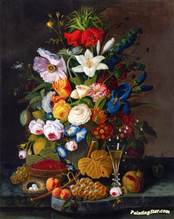 Abundant Bouquet with Pomegranate, Art Painting by Severin Roesen