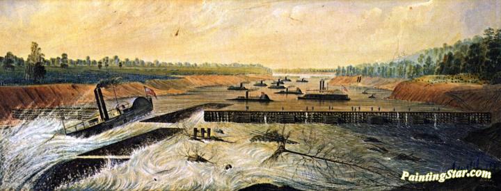 Admiral Porter's Fleet Passing over the Dam, Art Painting by James Madison Alden
