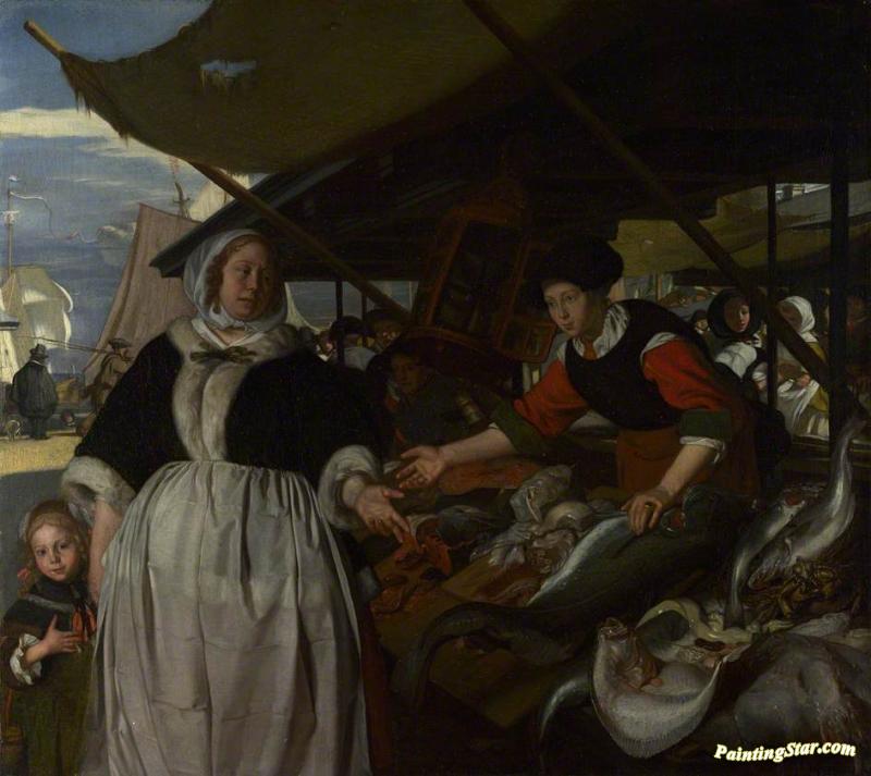 Adriana Van Heusden And Her Daughter At The New Fishmarket In Amsterdam, Art Painting by Emanuel de Witte