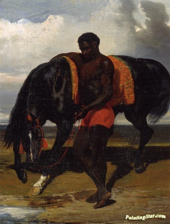 African Tending a Horse by the Sea, Art Painting by Alfred de Dreux