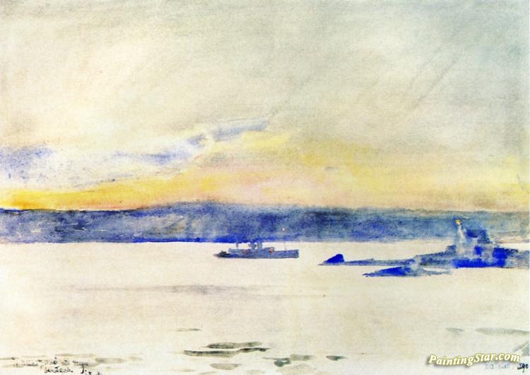 Afterglow, Gloucester Harbor, Art Painting by Frederick Childe Hassam