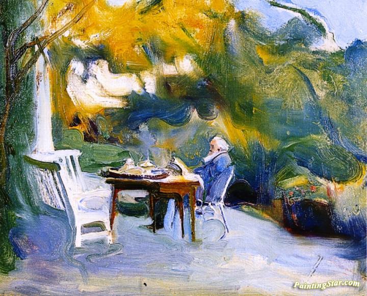 Alfred Lys Baldry Seated At A Table In The Gardens At The Kennels, Art Painting by Philip Alexius de Laszlo