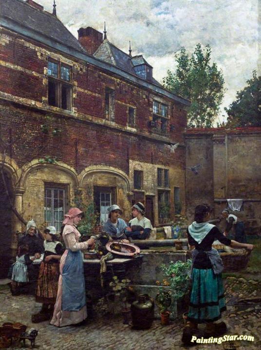 Alms Houses, Antwerp, Belgium, Art Painting by William Logsdail