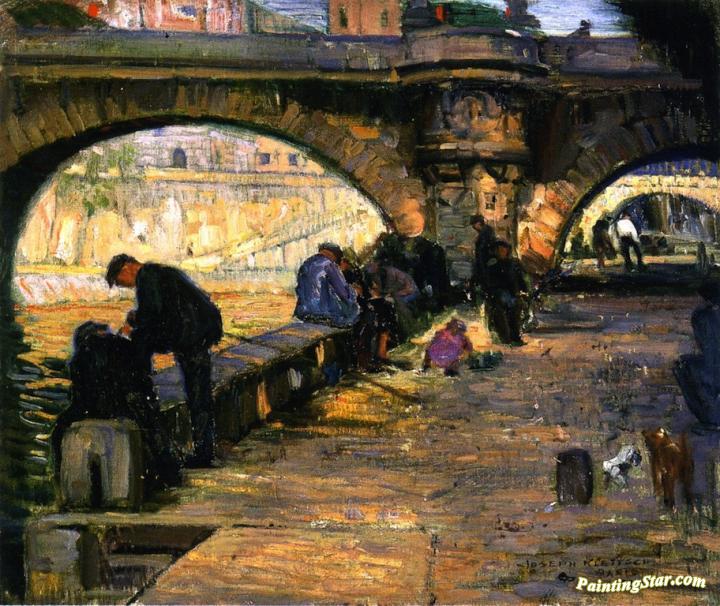 Along The Seine, Paris, Art Painting by Joseph Kleitsch